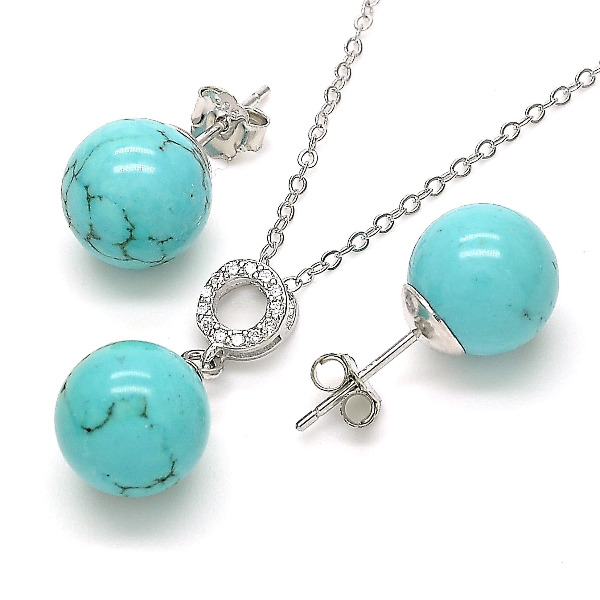 6MM to 12MM - Real Solid Sterling Silver & Blue Turquoise Ball Stud Earrings or 3 Pieces Set, 925 Sterling Silver, Bridesmaid Gift for Her