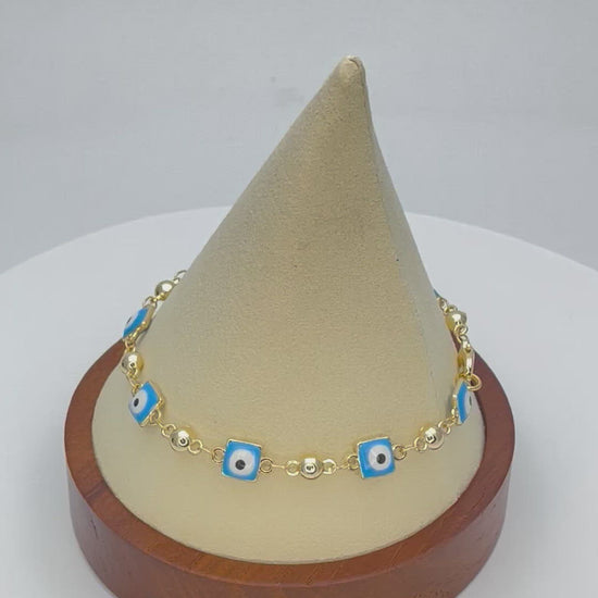 BABY BLUE & WHITE, Evil Eye Bracelet | Turkish Eye Gold Bracelet, Greek Eye Gold Bracelet | Gift for Her, Gold Bracelet 6.5” - 8”