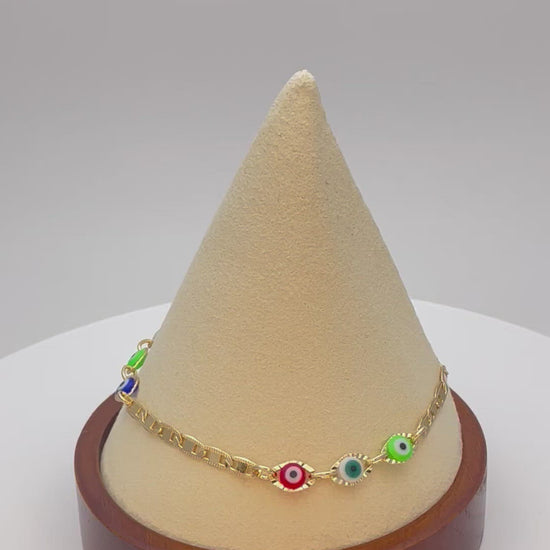 Multicolor & Evil Eye Bracelet | Turkish Eye Gold Bracelet, Greek Eye Gold Bracelet | Evil Eye | Gift for Her, Gold Bracelet 6.5” - 8”