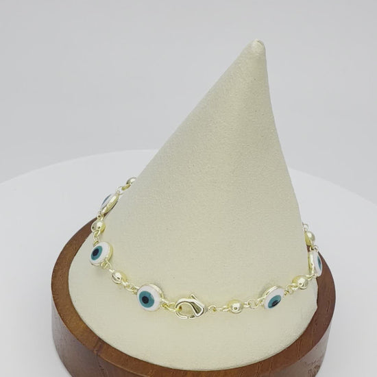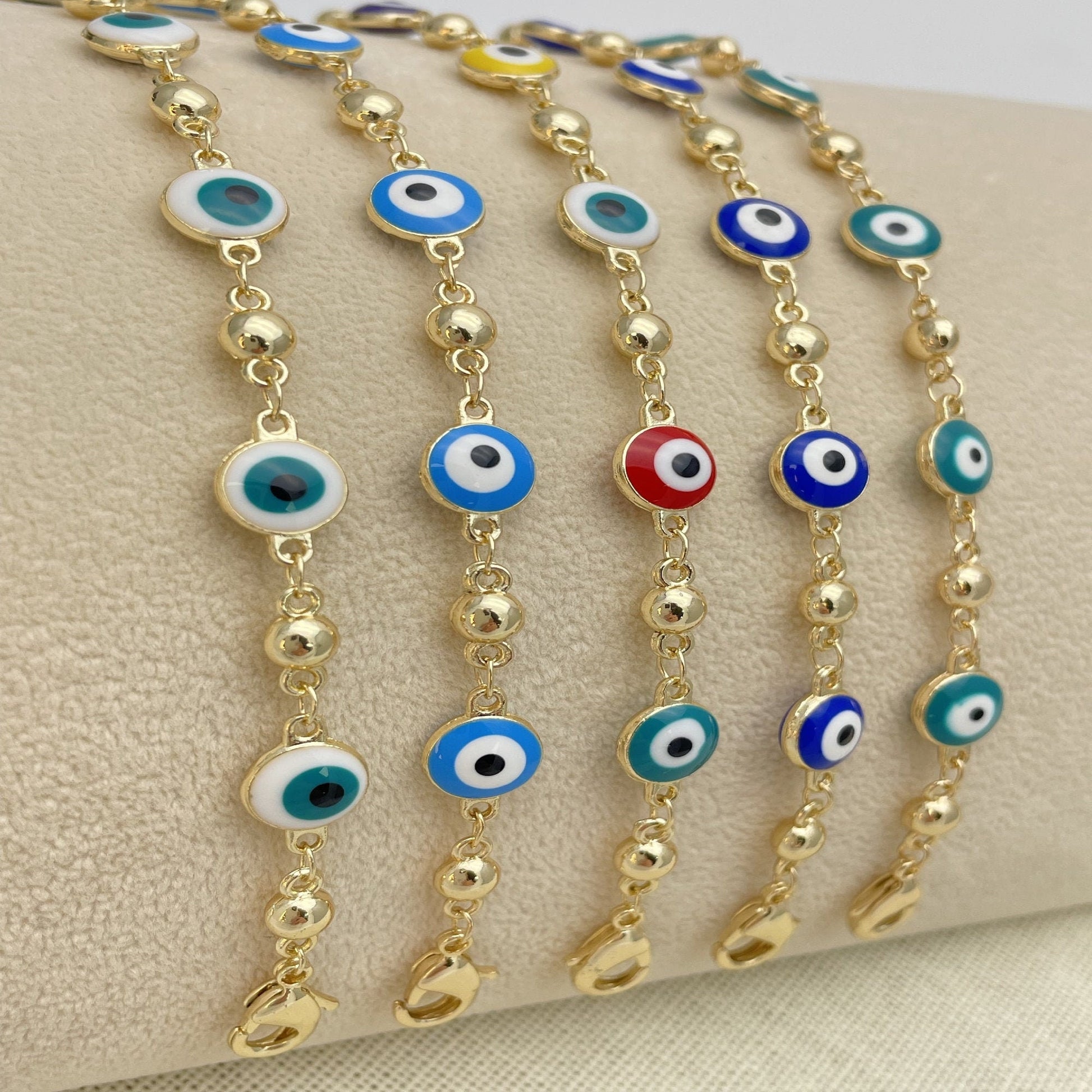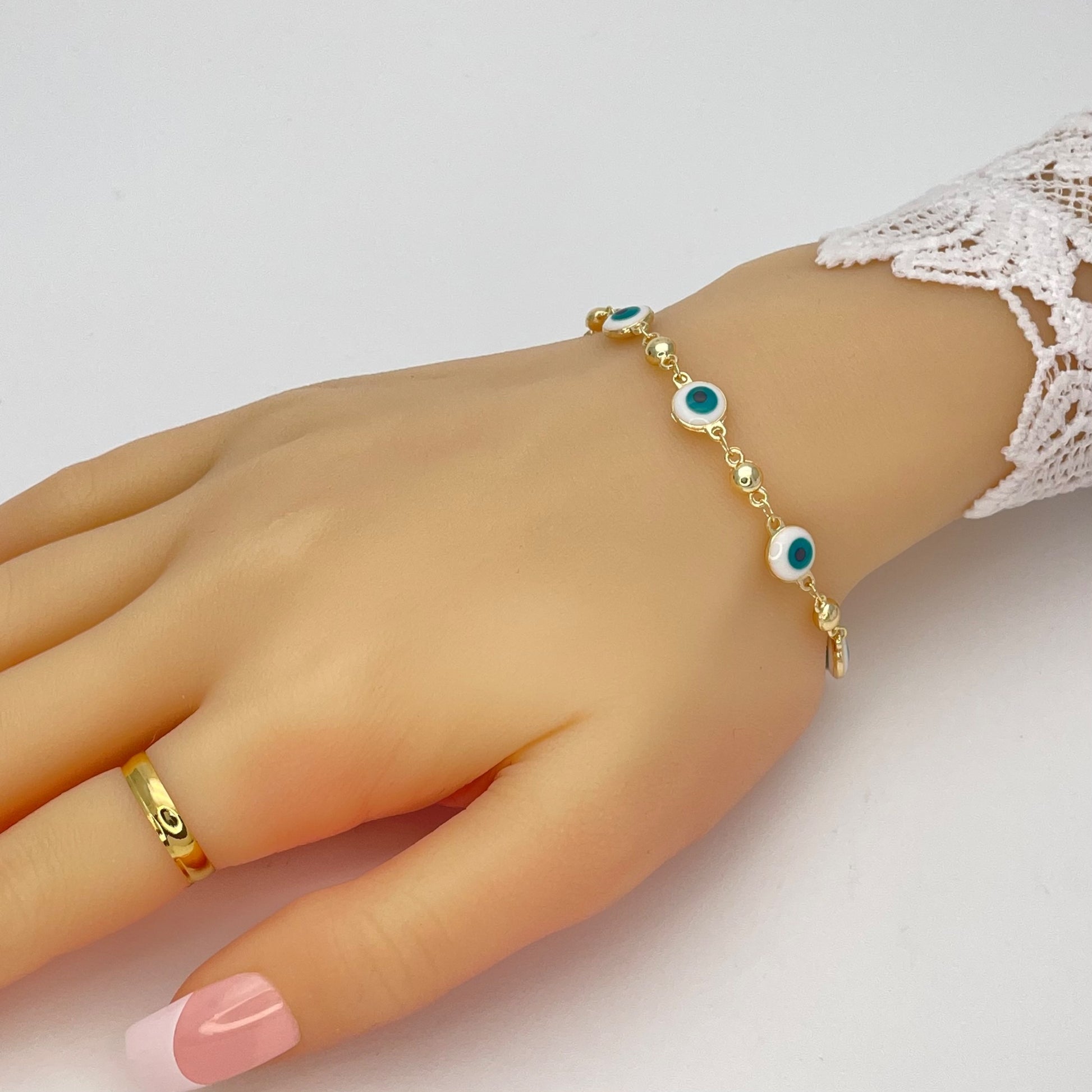 Minimalist WHITE & BLUE Evil Eye Gold Bracelet. HANDMADE Dainty Lucky Charm Gold Bracelet | Gift for Her | Gift for Mom - Gold Evil Eye Bracelet is a nice Gift for Her or Gift for Mom, maybe a Gift for Your Girlfriend - A Handmade Dainty Gold Bracelet with Minimalist Evil Eye Beads, Handmade with Love - Excellent Jewelry piece for Jewelry Making professionals as we also wholesale. AKA as: Turkish eye, Greek Eye, Mal de Ojo, Lucky Charm, Lucky Bead.