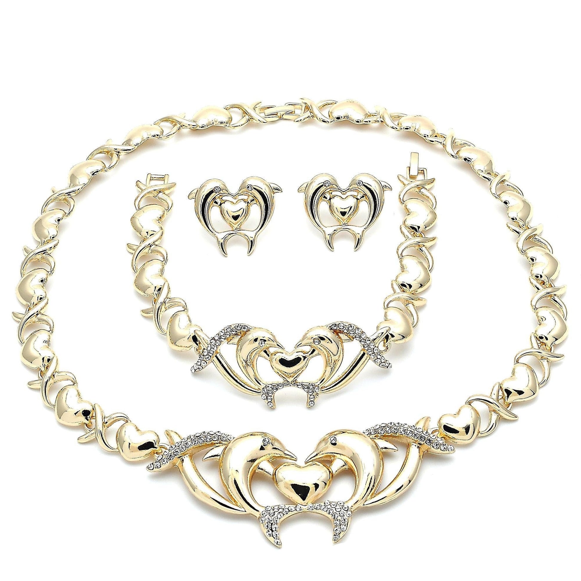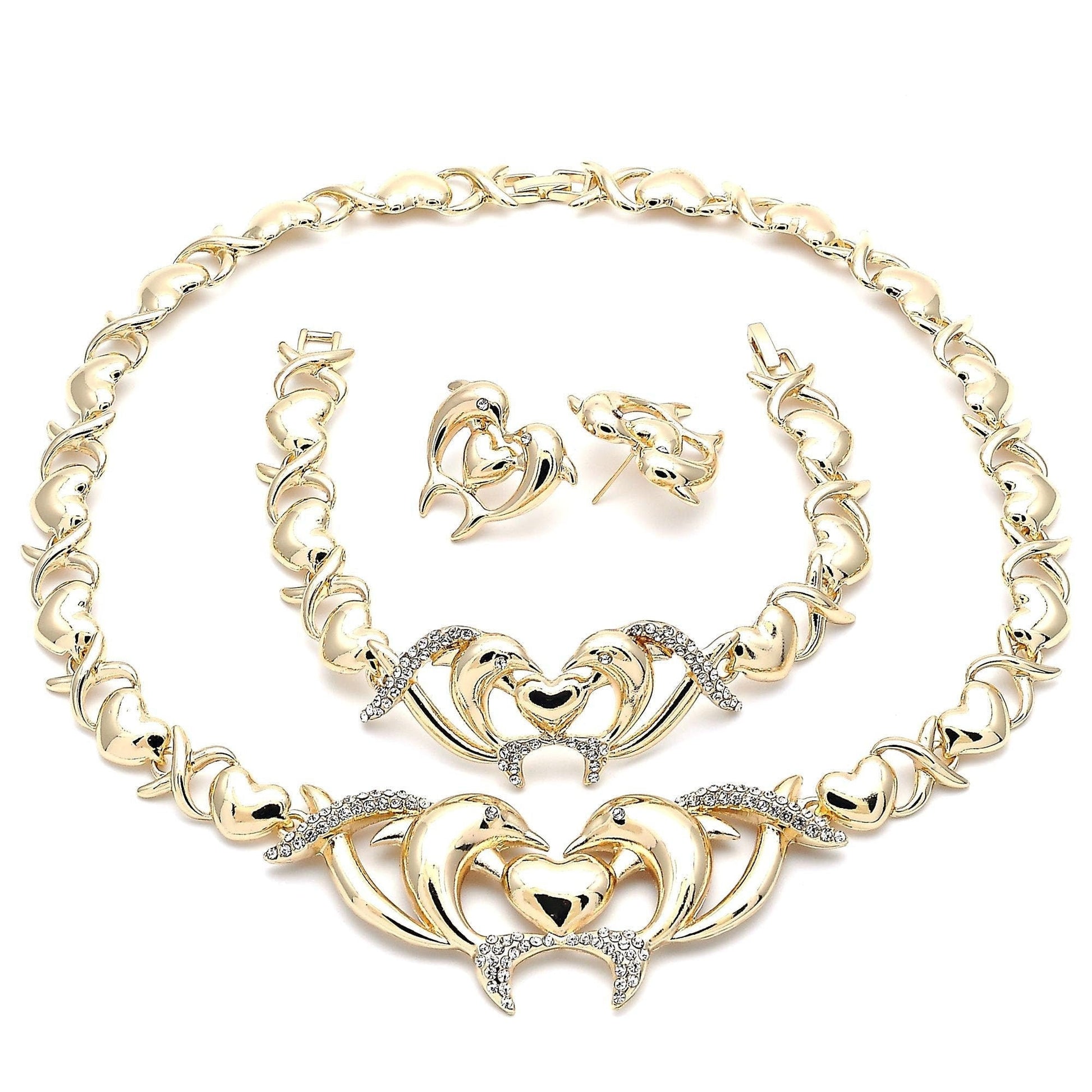 Gold Filled Set | Gold Necklace | Gold Fill Necklace | Gift for Mom | Gift for Sister | Gift for Girlfriend | Gift for my Wife | Gift for my Sister in Law | Gift for Grandma | Great Necklace Set for Women | Gold Layered Necklace| Bracelet and Earring | Hugs and Kisses | Love Design | Polished Gold Finish | Dolphin XO Necklace Set