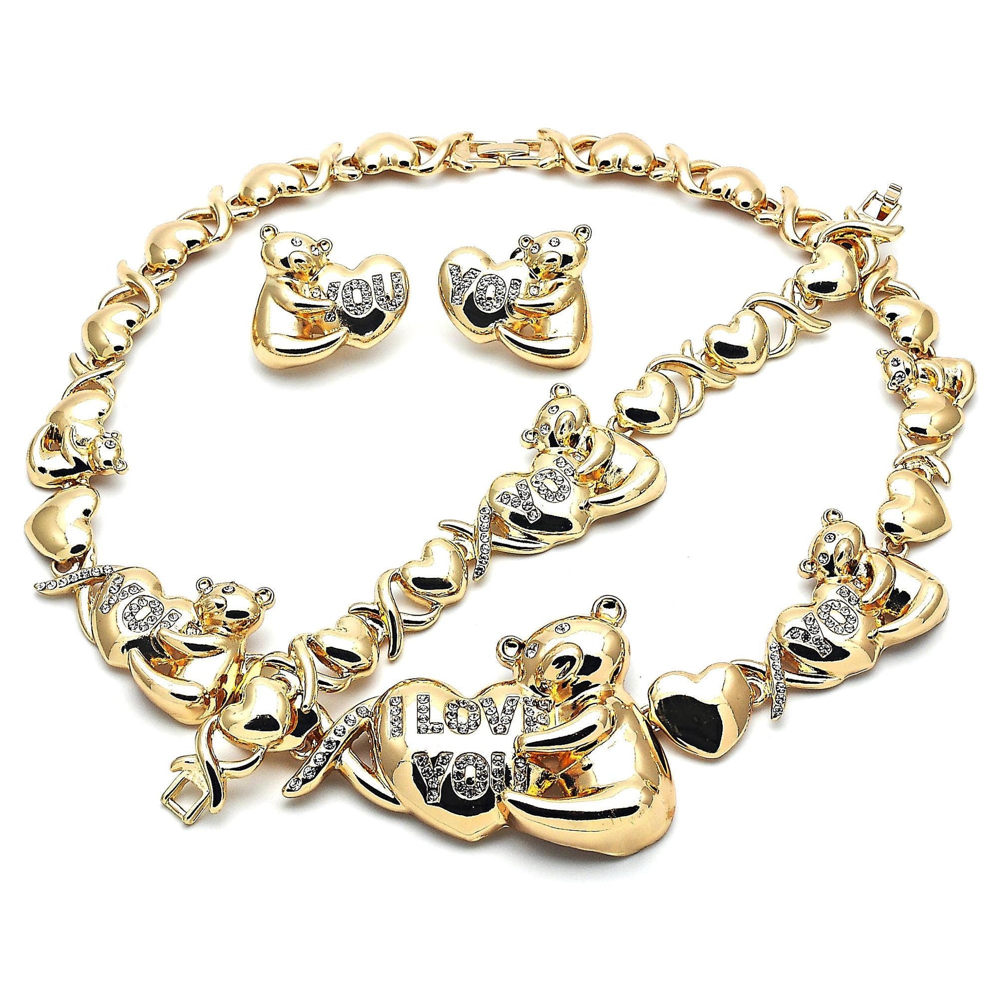 Gold Jewelry Set |HUGS & KISSES Xo Set | 18K Real Gold Finish Jewelry Set | XOXO Necklace Set | Heart Jewelry Set | Gift for Her Sister, Mom |