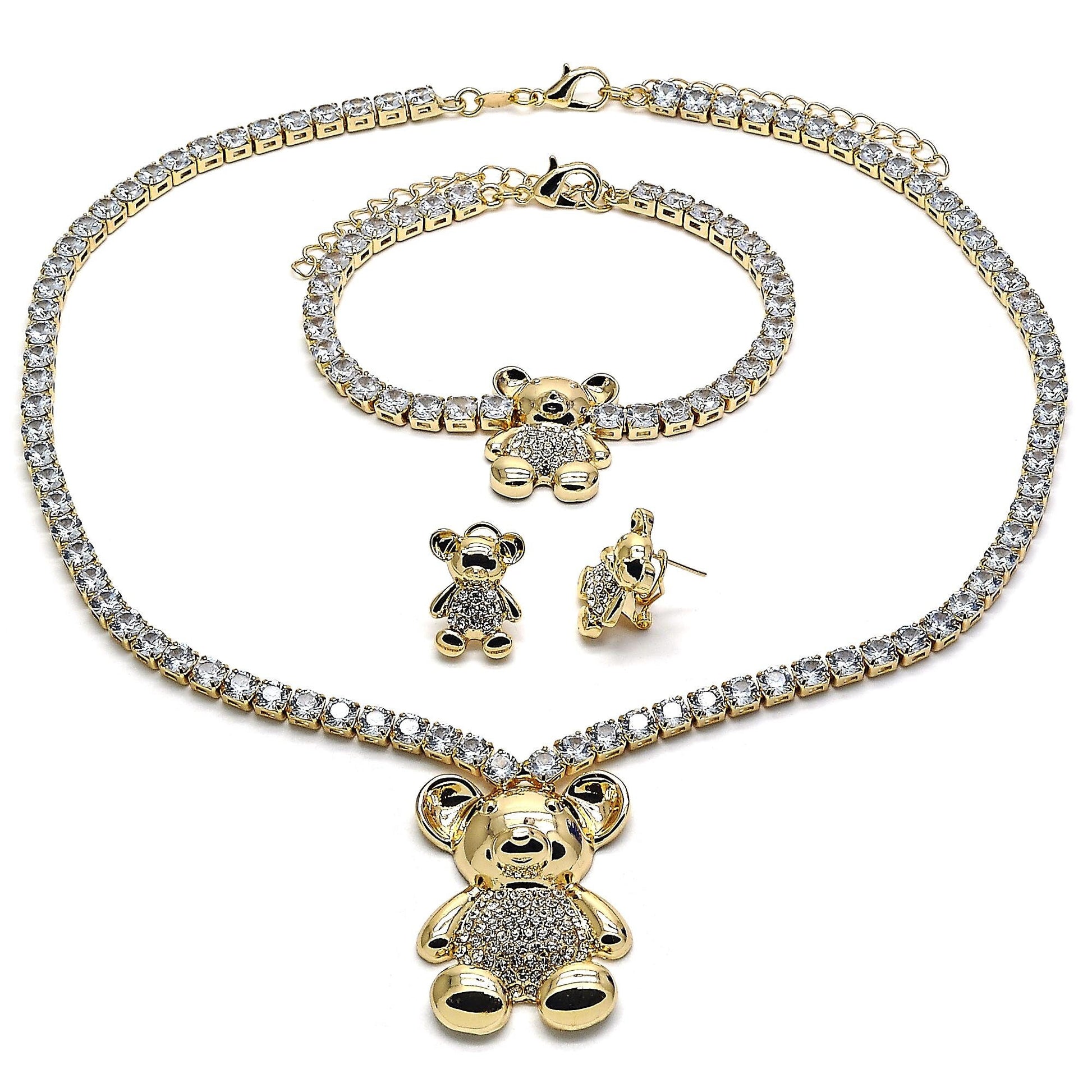 TEDDY BEAR CRYSTAL NECKLACE - XO HUGS & KISSES DIAMOND ∙ NECKLACE - Gold Set HUGS & KISSES Crystal Gold Necklace | Statement Necklace and Gold Bracelet Set | XOXO Necklace | Teddy Bear Necklace | Gift For Her