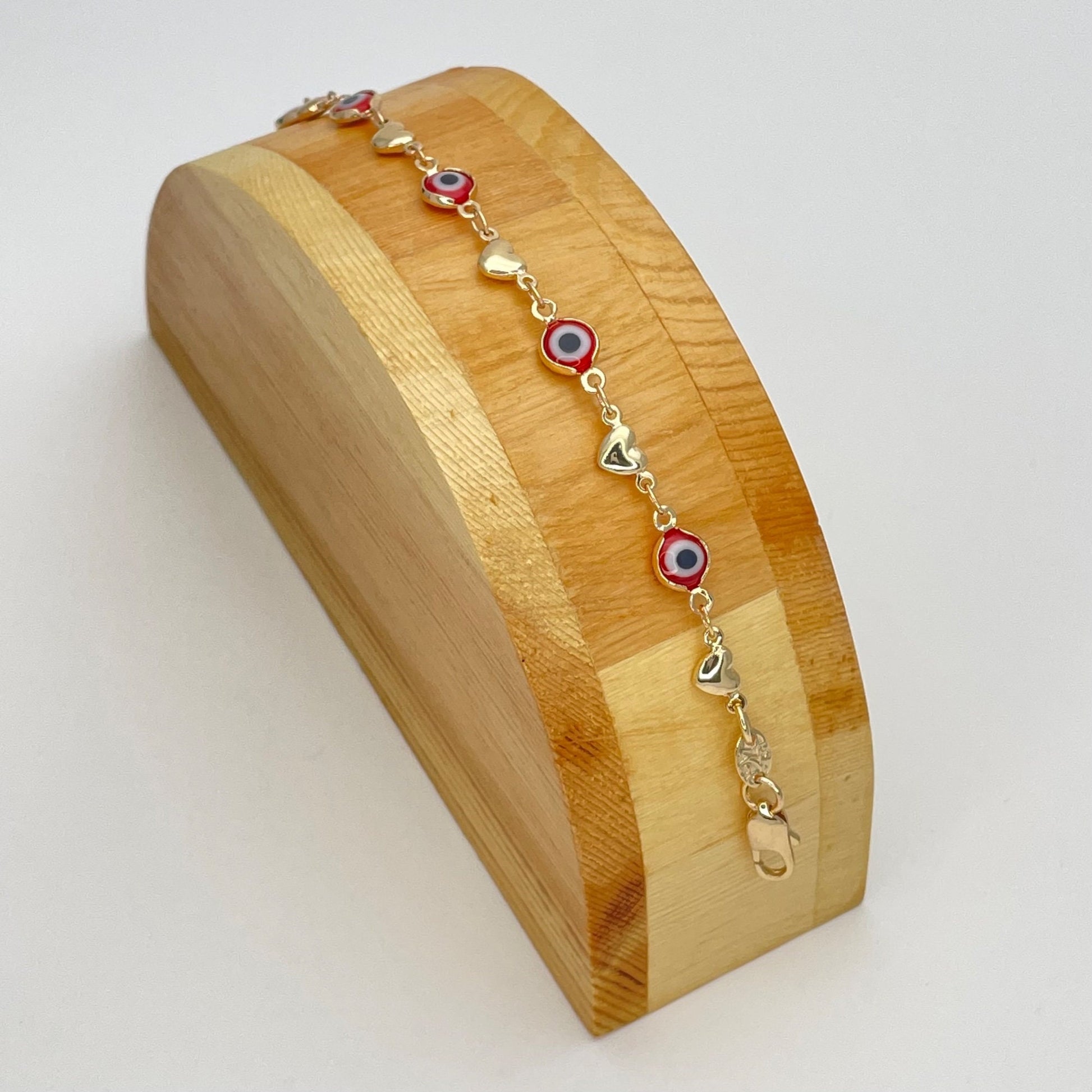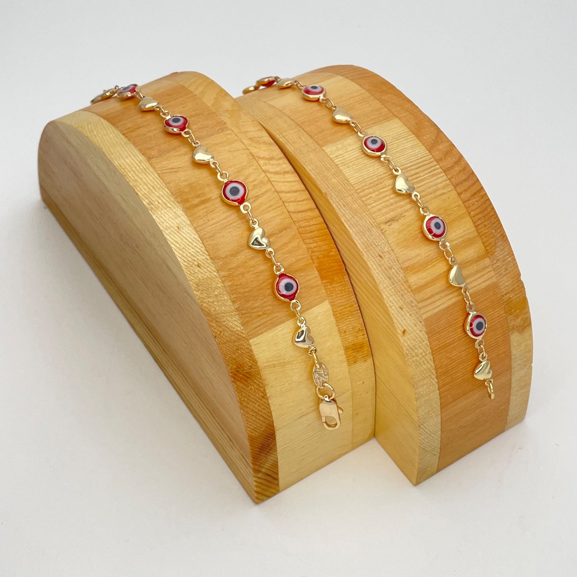 GREEN & WHITE Evil Eye Handmade Dainty Gold Bracelet, Minimalist Evil Eye Charm Beads, Gold Filled Heart Bracelet a Gift for Her or Gift Mom