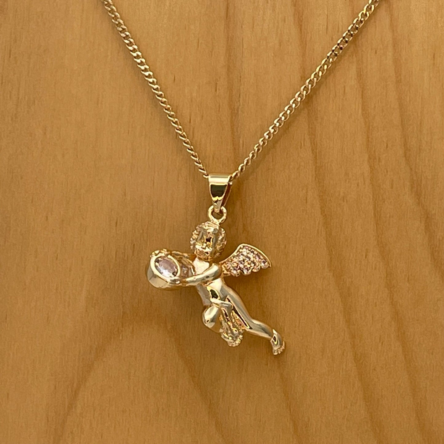 Handmade Gold Angel Chain Necklace Dainty Angel Pendant White Zirconia on Wing, Chain Gold Filled Jewelry Making Wholesale Gift for her