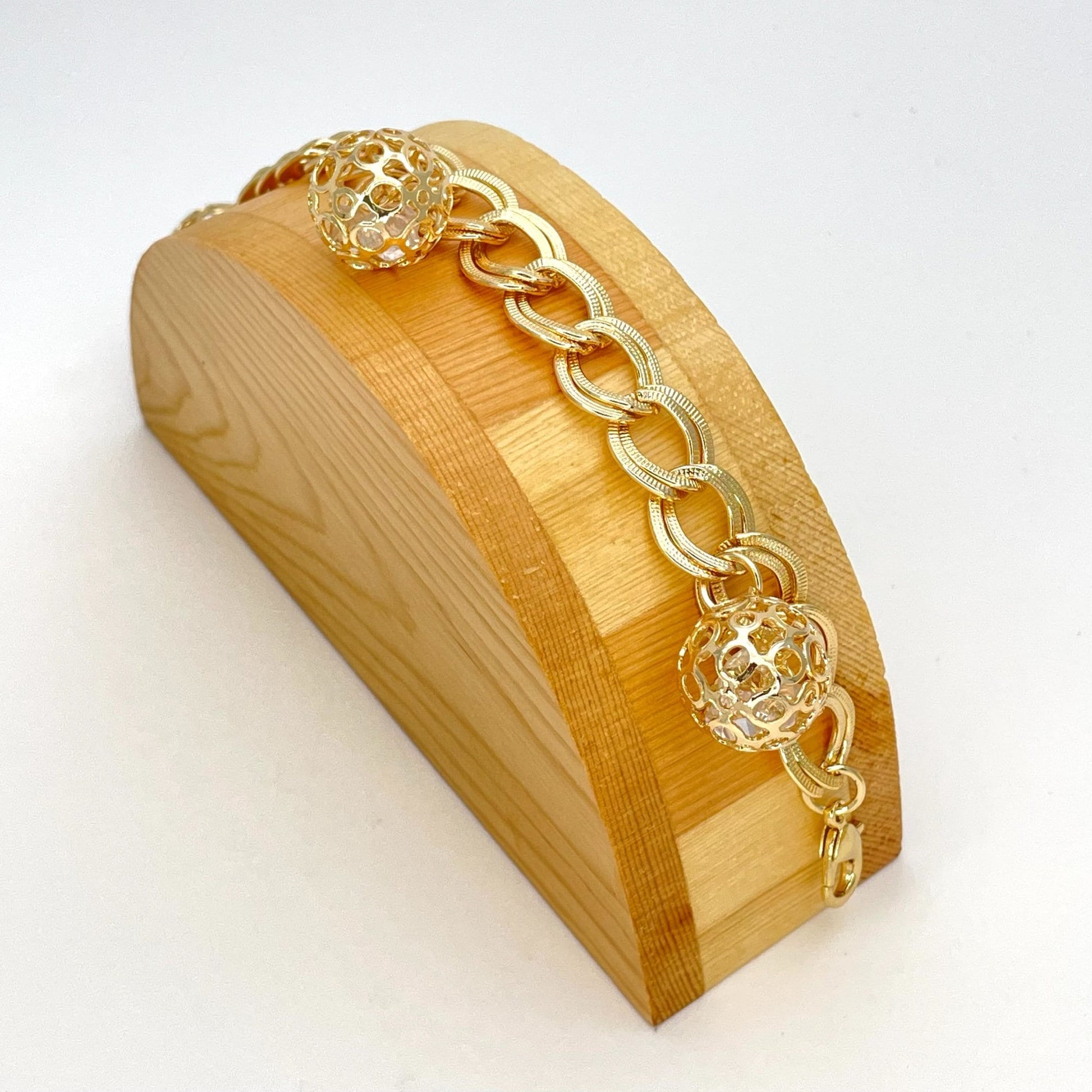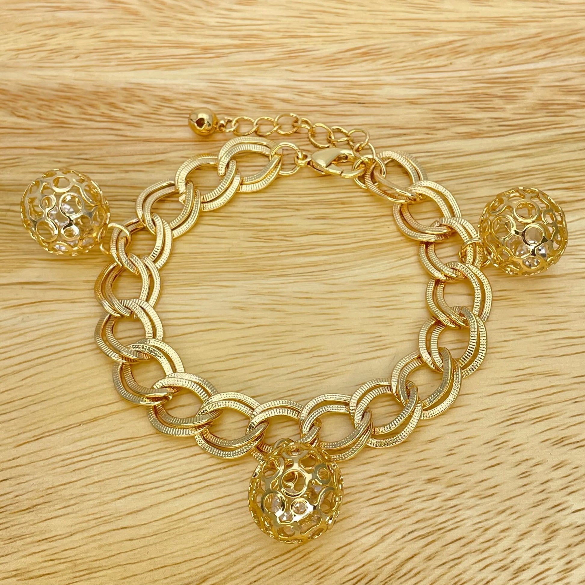 Handmade Gold Bracelet, Gift Her with this Gold Filled Charm Dainty Bracelet. It is Chunky and Simple at the same time. Gold Ball with Dangling CZ Diamond Inside Excellent gift for Best Friend or Gift for Her, a Gift for Mom. It is 14K Gold Finish on a sturdy Metal Base, it is Made to Last. Gold Crystal charm bracelet SKU 142789
