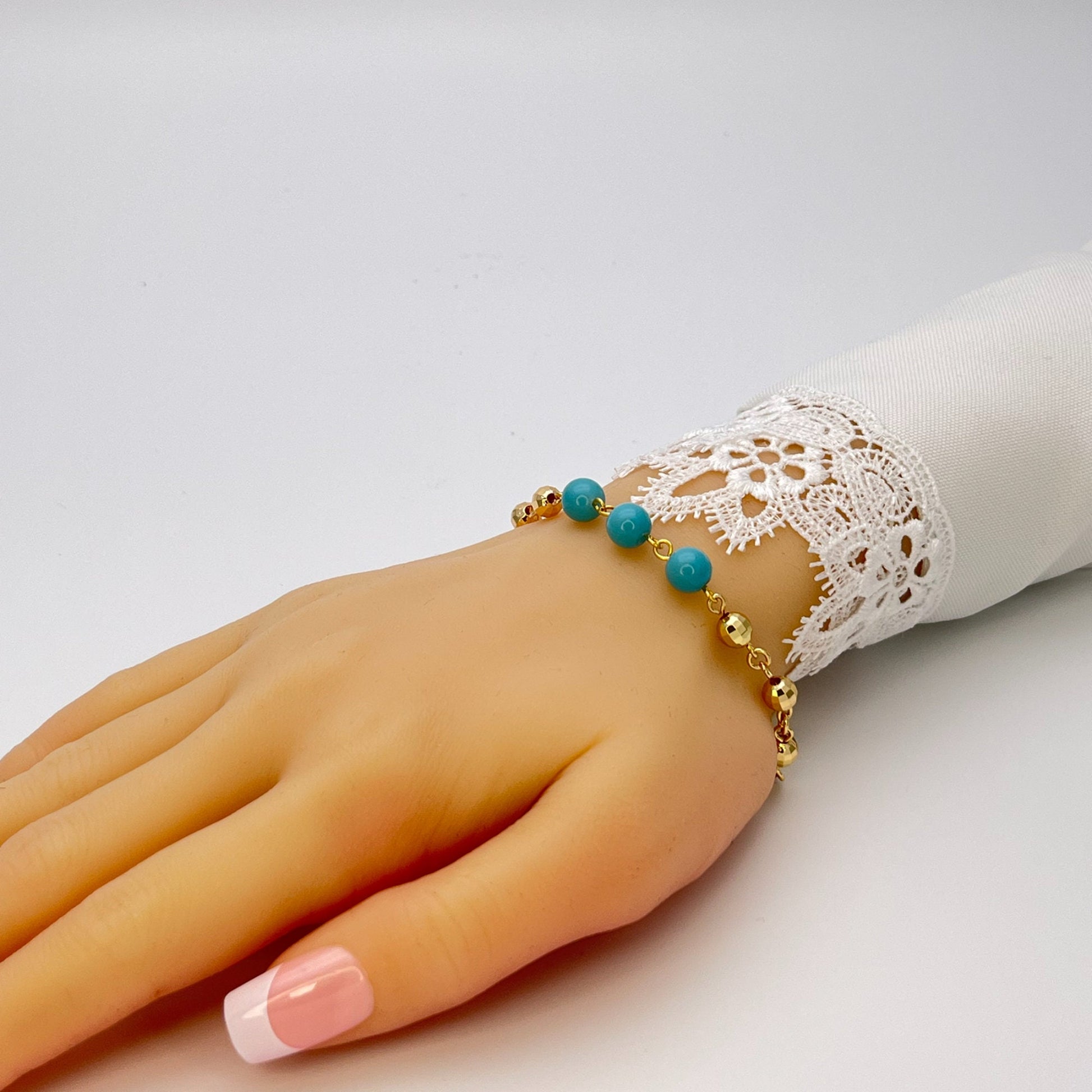 Handmade Blue Turquoise Bracelet | Signature Stackable Gold Filled Bracelet | Synthetic Stone | Adjustable Friendship Bracelet, Gift for Her SKU146251