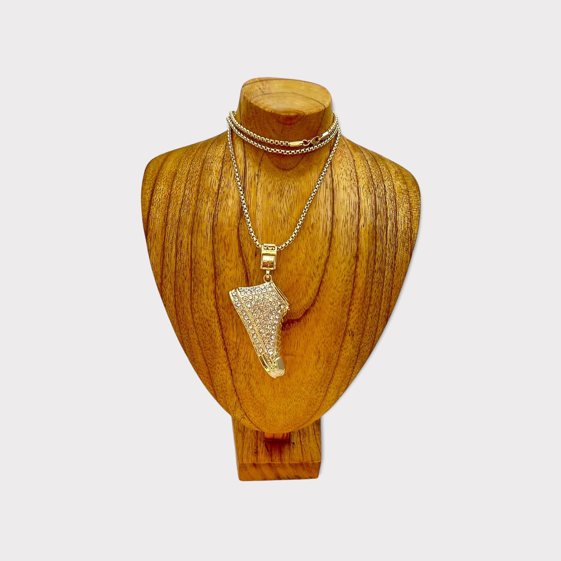Men Diamond Pendant | Handmade 24" Gold Box Chain Necklace, Bling Custom Large Shoe Pendant Iced Out | Gift for Him | Gold Filled | Jewelry Making | Handmade Wholesale Jewelry Available upon Request.