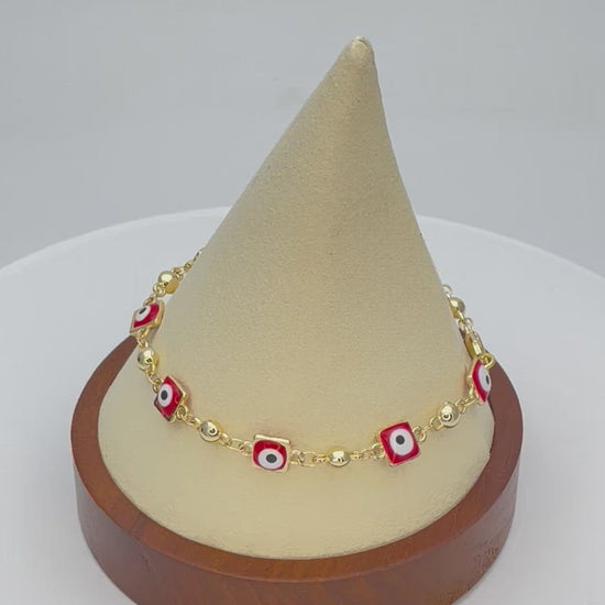 RED AND WHITE SQUARE SHAPE CHARMS OF EVIL EYE BRACELET- Gold Evil Eye Beads Bracelet is a nice Gift for Her or Gift for Mom, maybe a Gift for Your Girlfriend - A Handmade Dainty Gold Bracelet with Minimalist Evil Eye Beads, Handmade with Love - Excellent Jewelry piece for Jewelry Making professionals as we also wholesale - AKA as Turkish eye, Greek Eye, Mal de Ojo, Lucky Charm, Lucky Bead.