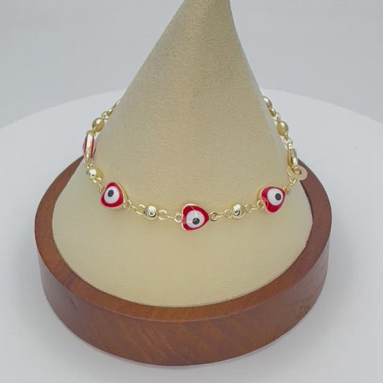 RED & WHITE Evil Eye Gold Bracelet HANDMADE Dainty Lucky Charm Bead Bracelet | Gift for Her | Gift for Mom | Gift for Best Friend