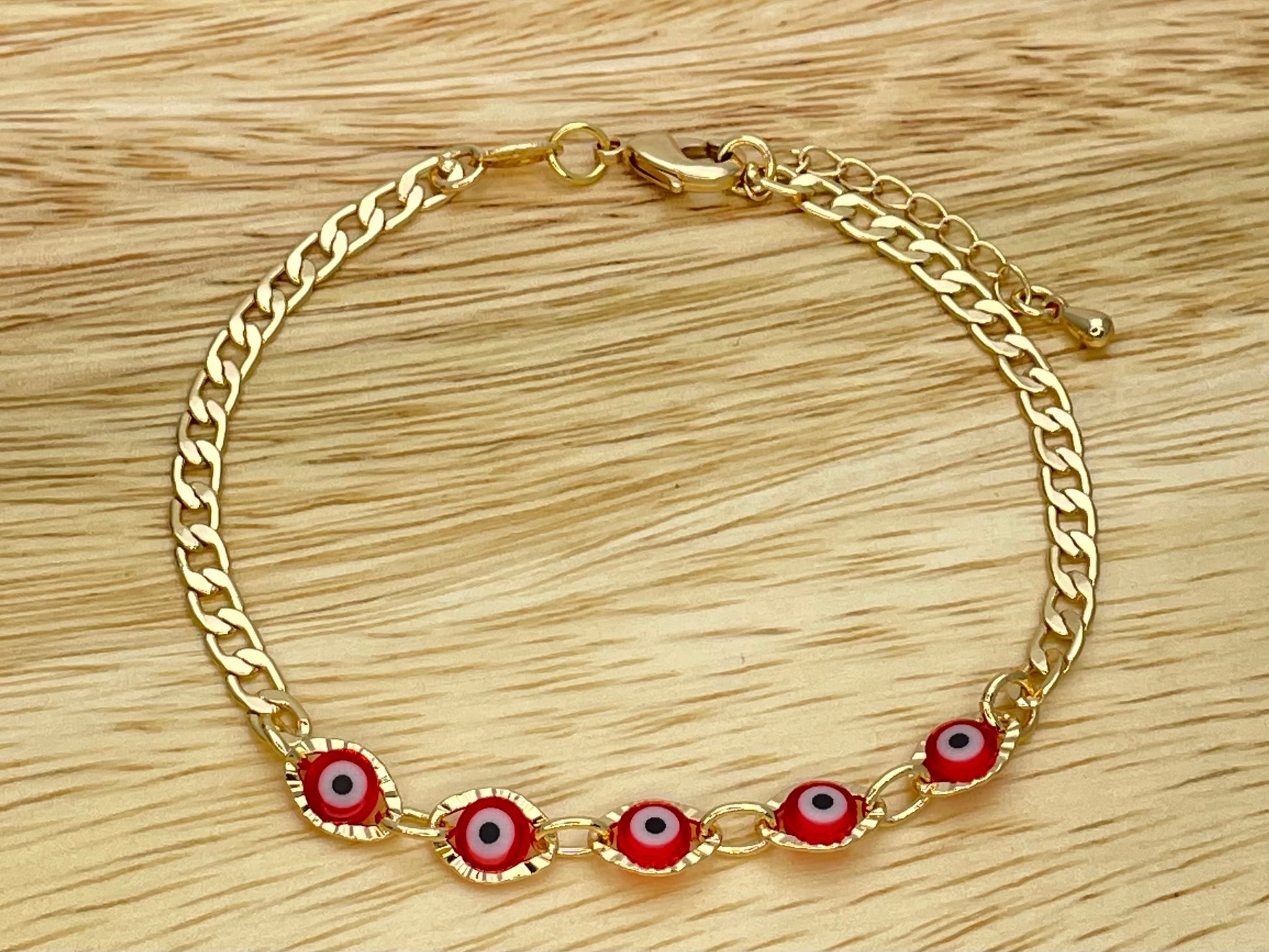 MINIMALIST RED Evil Eye Gold Bracelet. HANDMADE Dainty Lucky Charm Gold Bracelet Gift for Her | Gift for Mom | Best Friend Gift