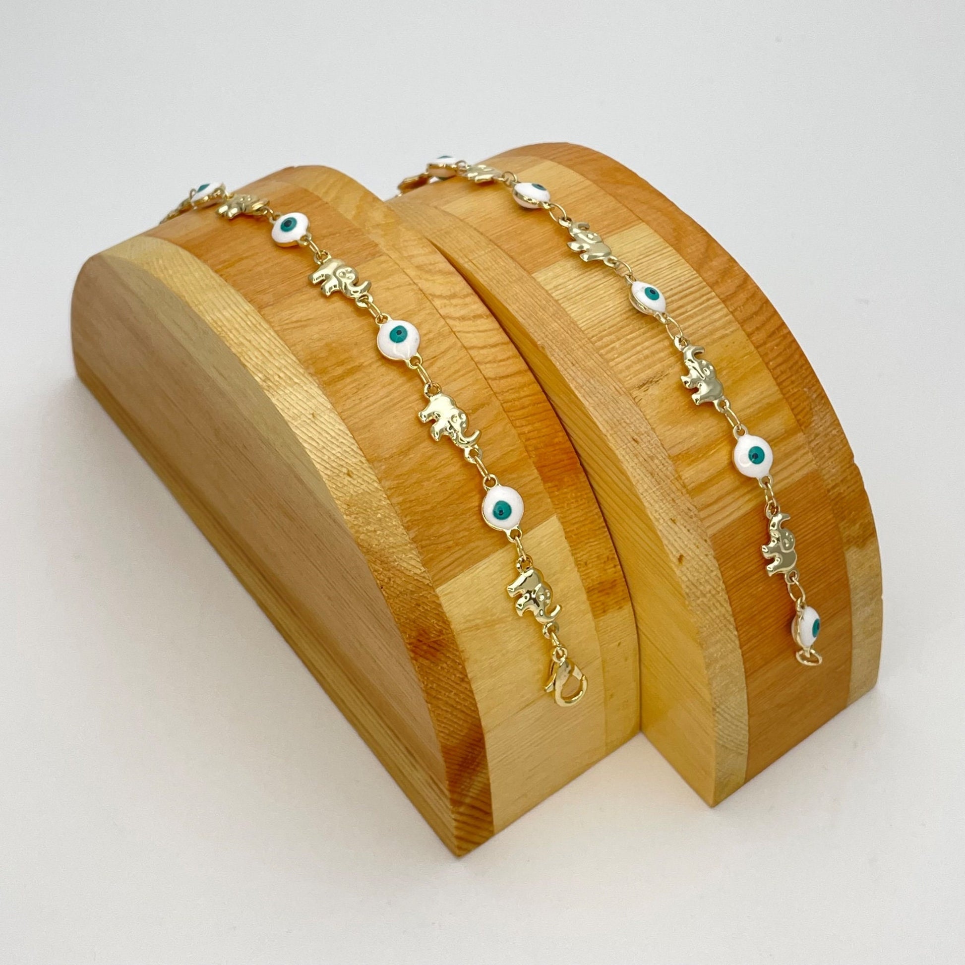 WHITE & GREEN Evil Eye ELEPHANT Gold Bracelet Evil Eye ELEPHANT Gold Bracelet | ELEPHANT BRACELET Blue Beads of Evil Eye Bracelet, It's a Gold Bracelet, Minimalist Bracelet Style of Evil Eye, Dainty Lucky Bracelet, Gold Finish with Gold Filled, Gift for Her