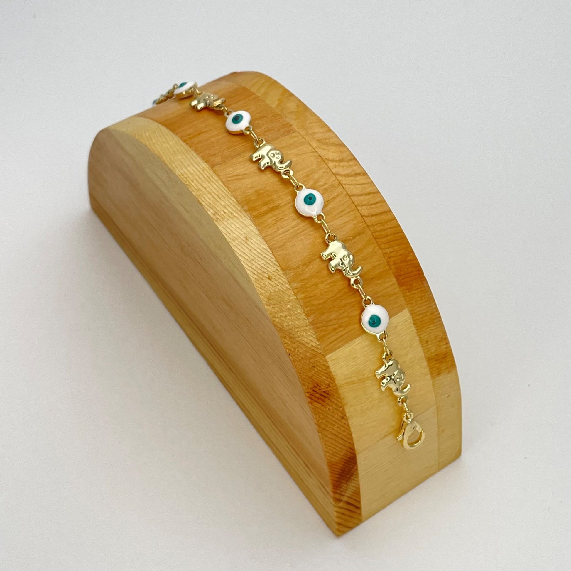 WHITE & GREEN Evil Eye ELEPHANT Gold Bracelet, Minimalist Handmade Gold Jewelry a Dainty Evil Eye Bracelet, Gold Evil Eye, Gift for Her